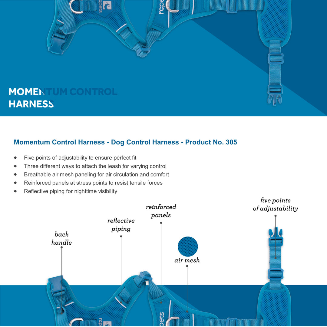 The ideal harness for your everyday adventures, the Momentum Control Harness will take you seamlessly from the park to the trails. With both front and back connection points, as well as a quick control back handle, this harness will have you ready for anything. The 5 points of adjustability ensure the perfect fit while the breathable mesh body will keep your pooch comfortable while on the go.