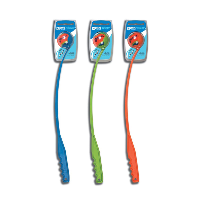 With the Chuckit! Classic Ball Launcher, you'll easily be able to throw three times as far as normal, and without ever bending over or touching a slobbery ball again. Grab the comfortable handle, press down on the ball, and let it fly. You'll wear Fido out in no time! Perfect for the dog park and wide open spaces. Not so great for studio apartments.