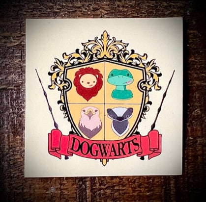 Show your school spirit with this fun crest sticker featuring the Dogwarts Crest!