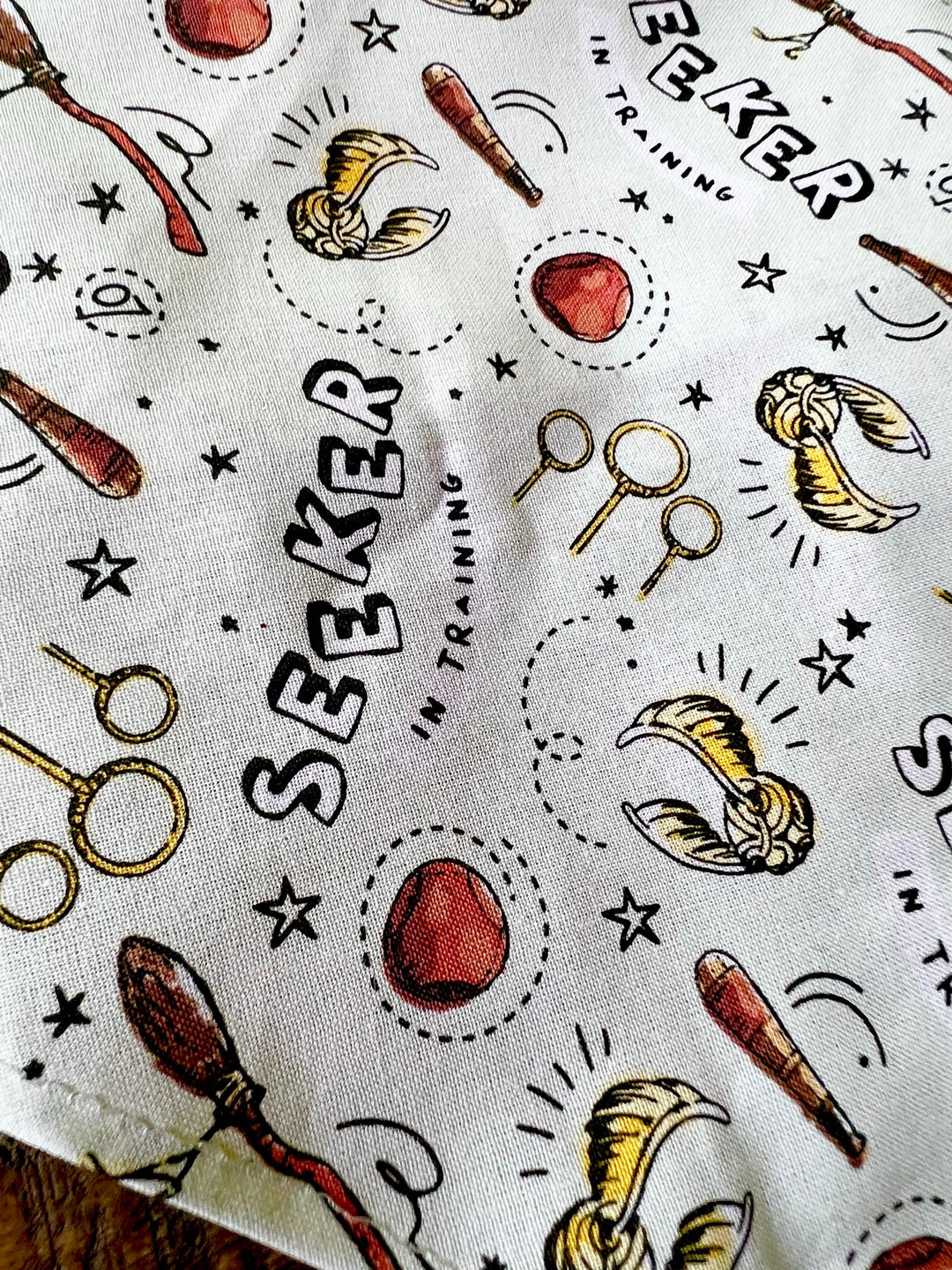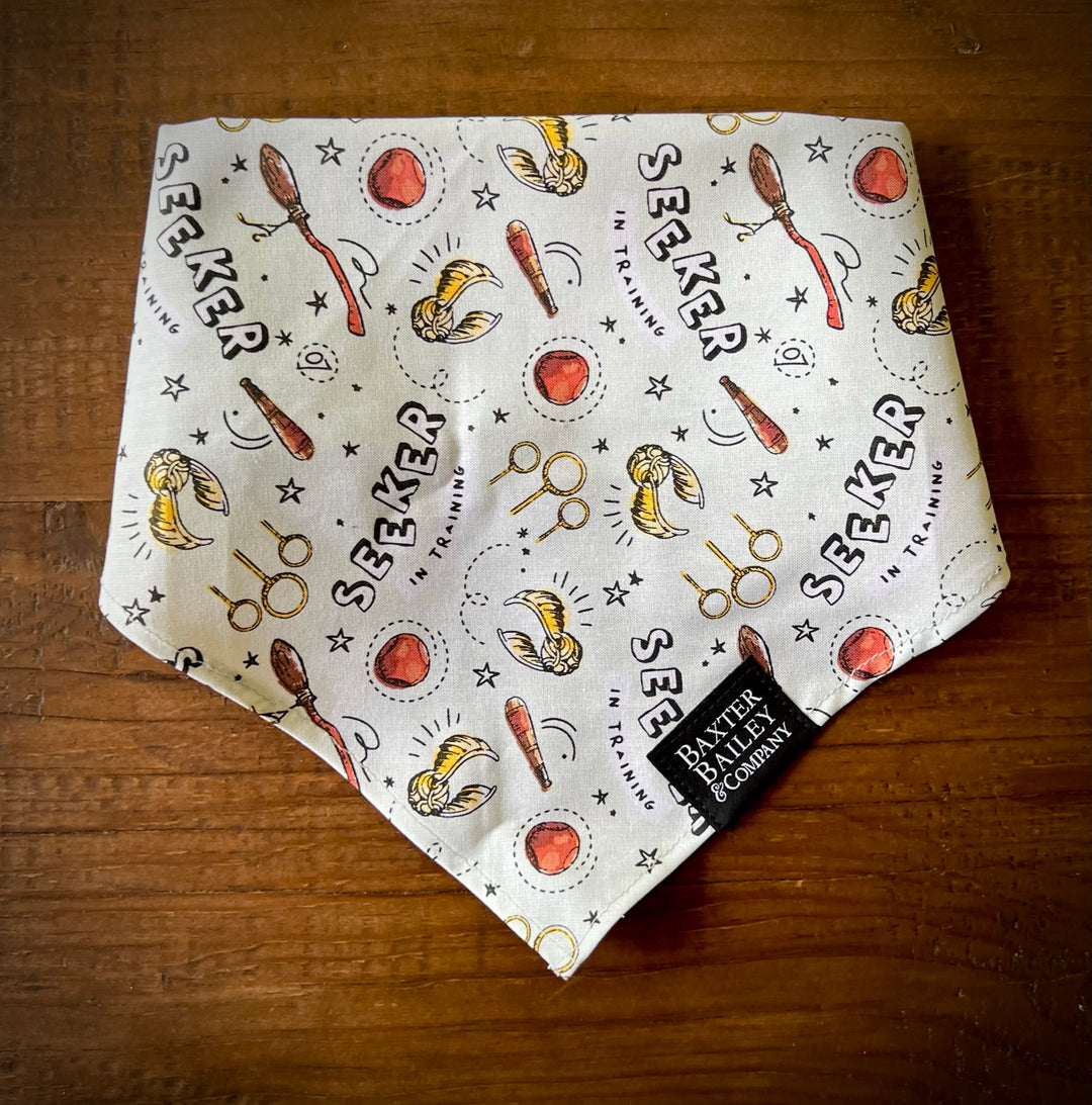 How adorable would this Seeker Bandana look on your furry wizard? This classic style tie bandana is available is four sizes: