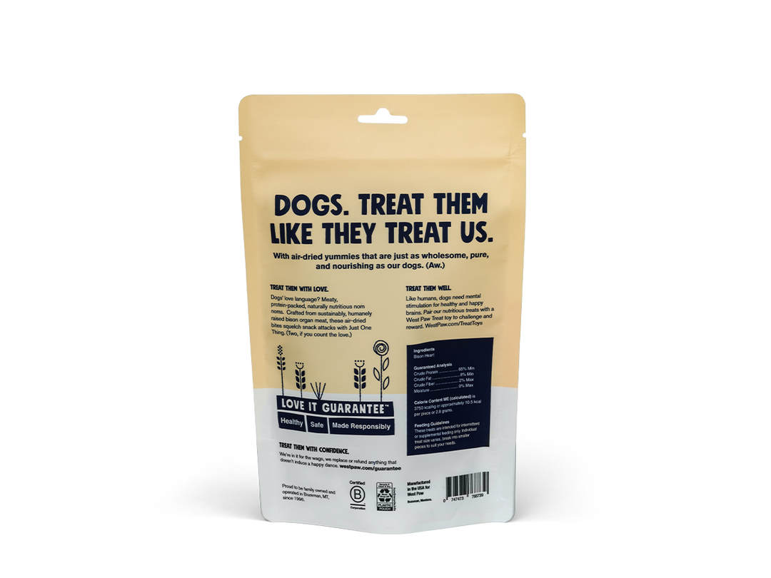 - Made in the USA from 100% Bison Hearts