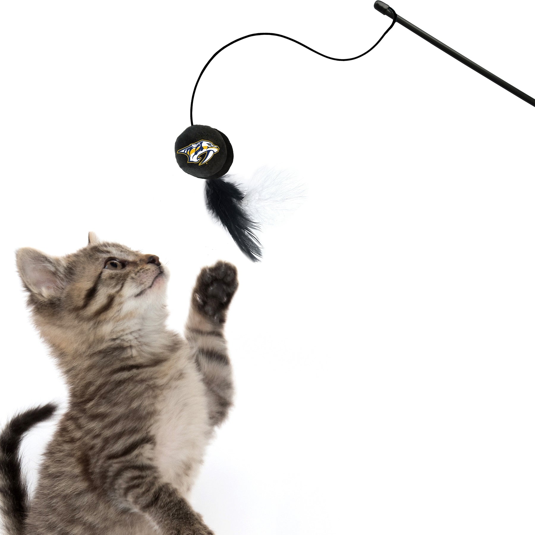 This cat wand will provide hours of fun for your pet, Plush mini ball and colorful feathers will grab your cat's interest, Elastic string features their favorite team's color, Give your kitty the workout it deserves.