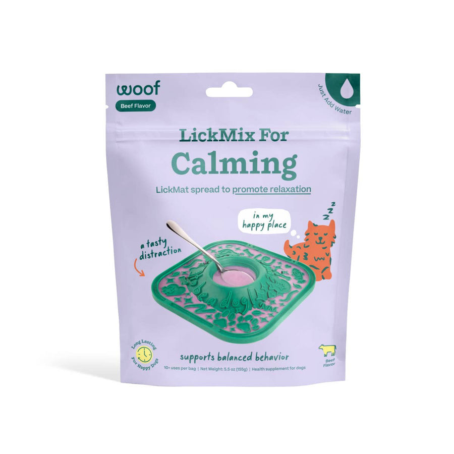 Designed to be paired with the Woof LickMat, our 'Lick-Mix' is able to solidify at room-temperature for ease of use. Simply mix the powder in the LickMat's central mixing bowl, spread the mixture on the mat, and in 10-15 minutes you'll have a delicious distraction for your dog.